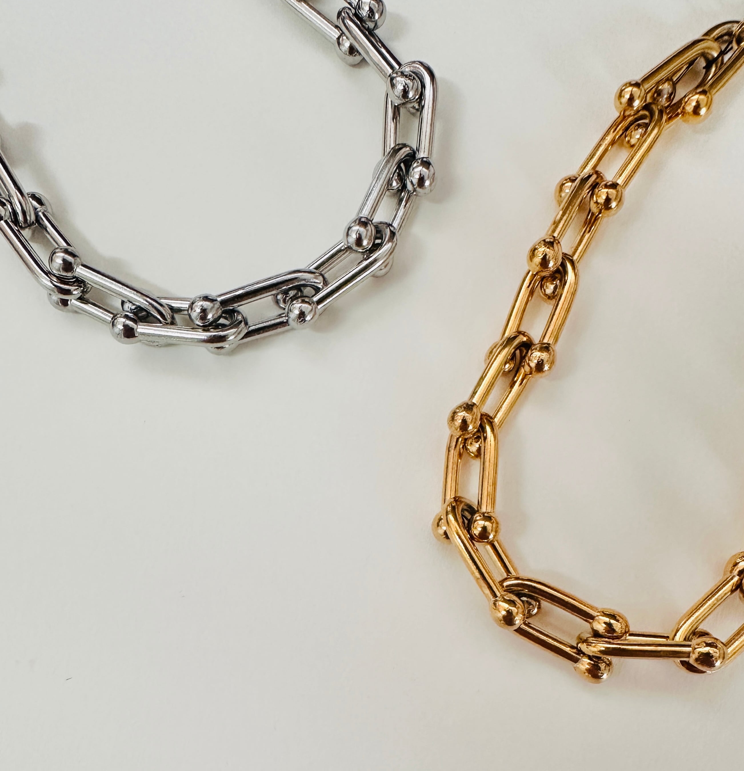 チェーンの形が印象的なブレスレット。