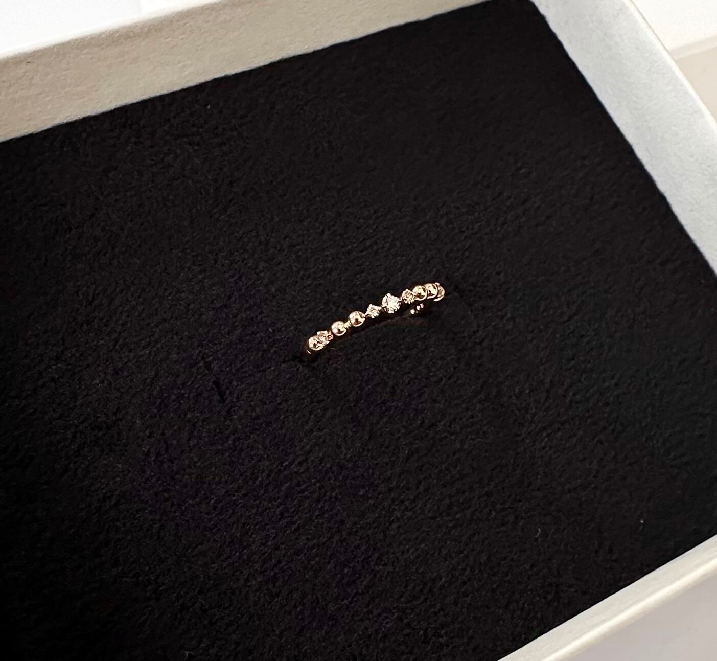 ダイヤのキラキラとドットのポコポコした形が、贅沢に可愛らしさのあるピンキーリングです♡