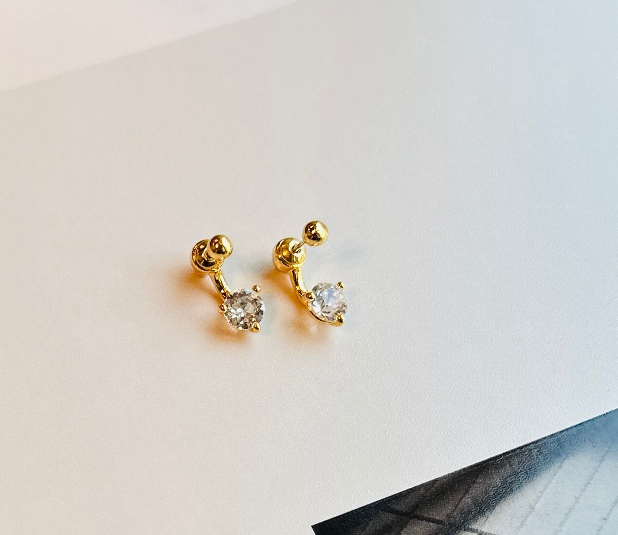 ダイヤのようなスワロフスキーが耳たぶの下でキラキラ輝く綺麗なピアス。