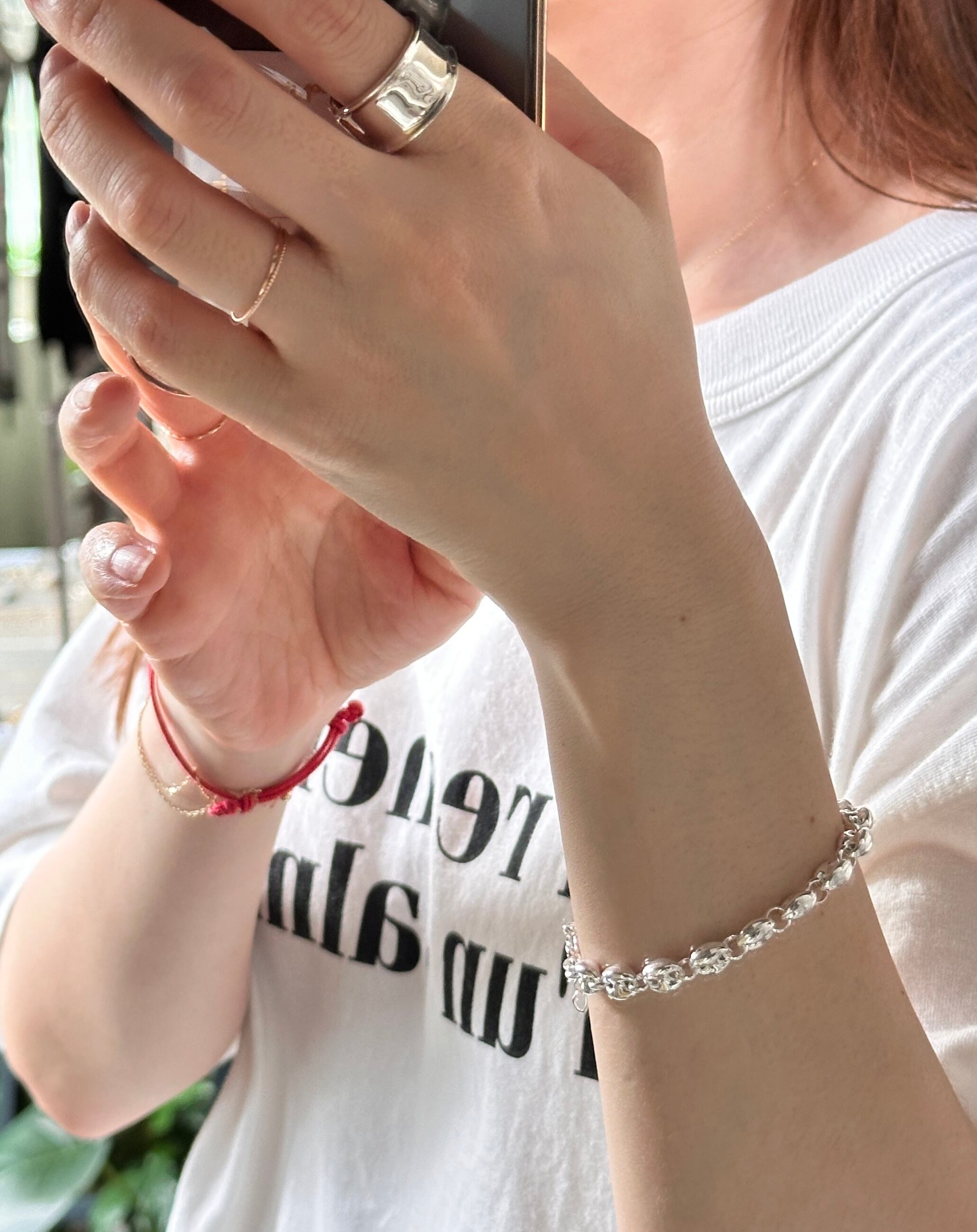 ボリュームのあるチェーンは手元のアクセントにぴったり。