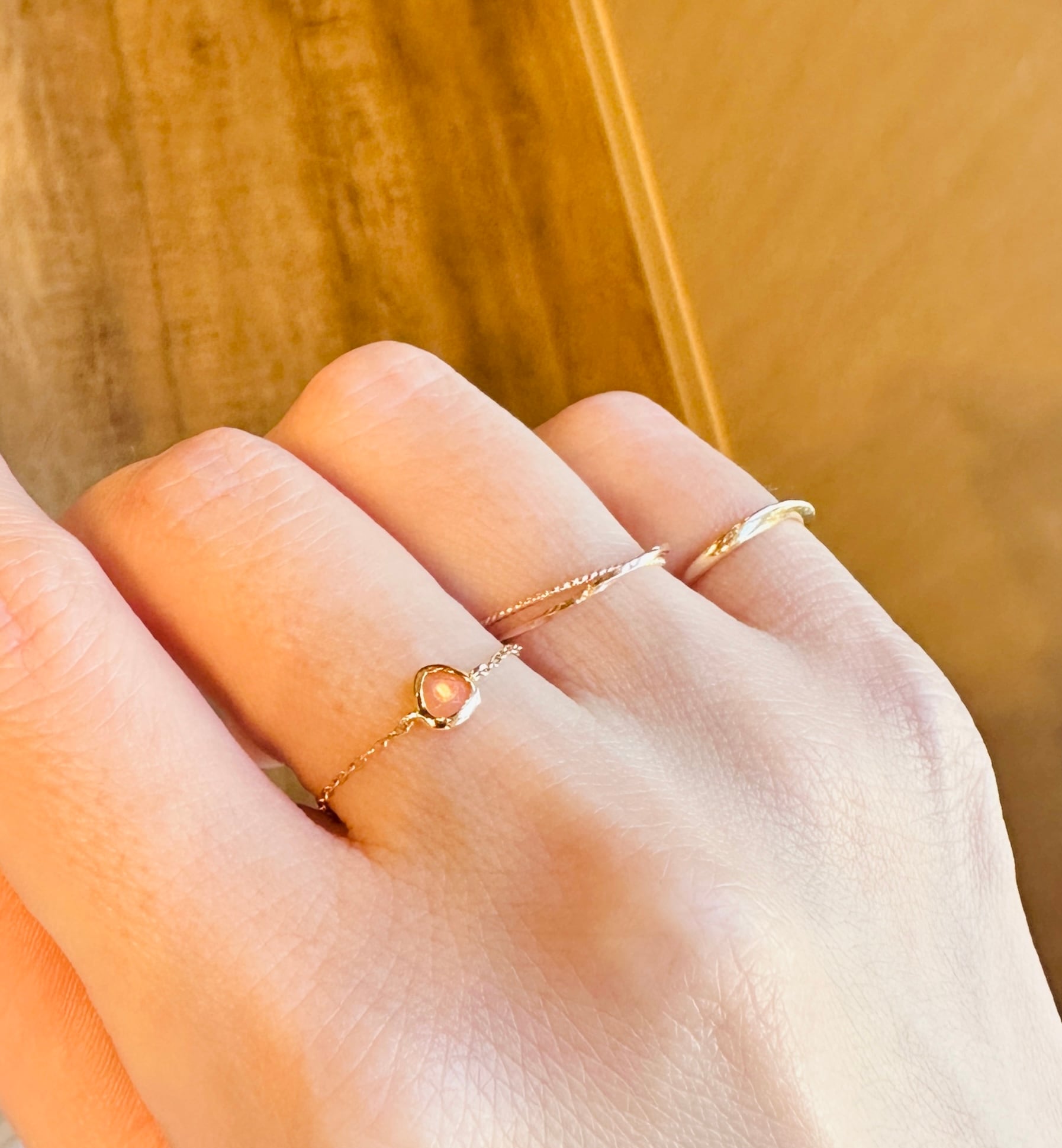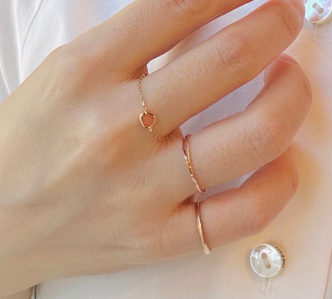 大きめリングやシンプルリングとのコーディネートにも使いやすくおすすめアイテムです。