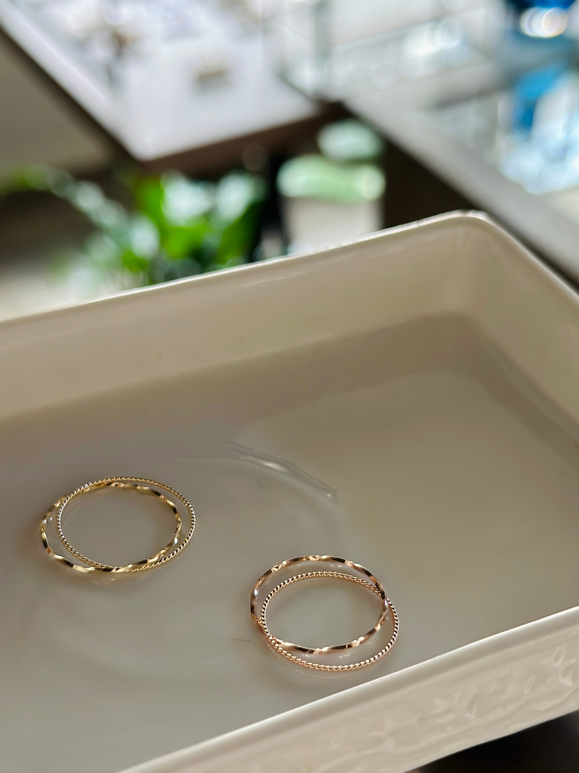 細いリングの重なりが、さりげなく可愛い大人気のデザイン。