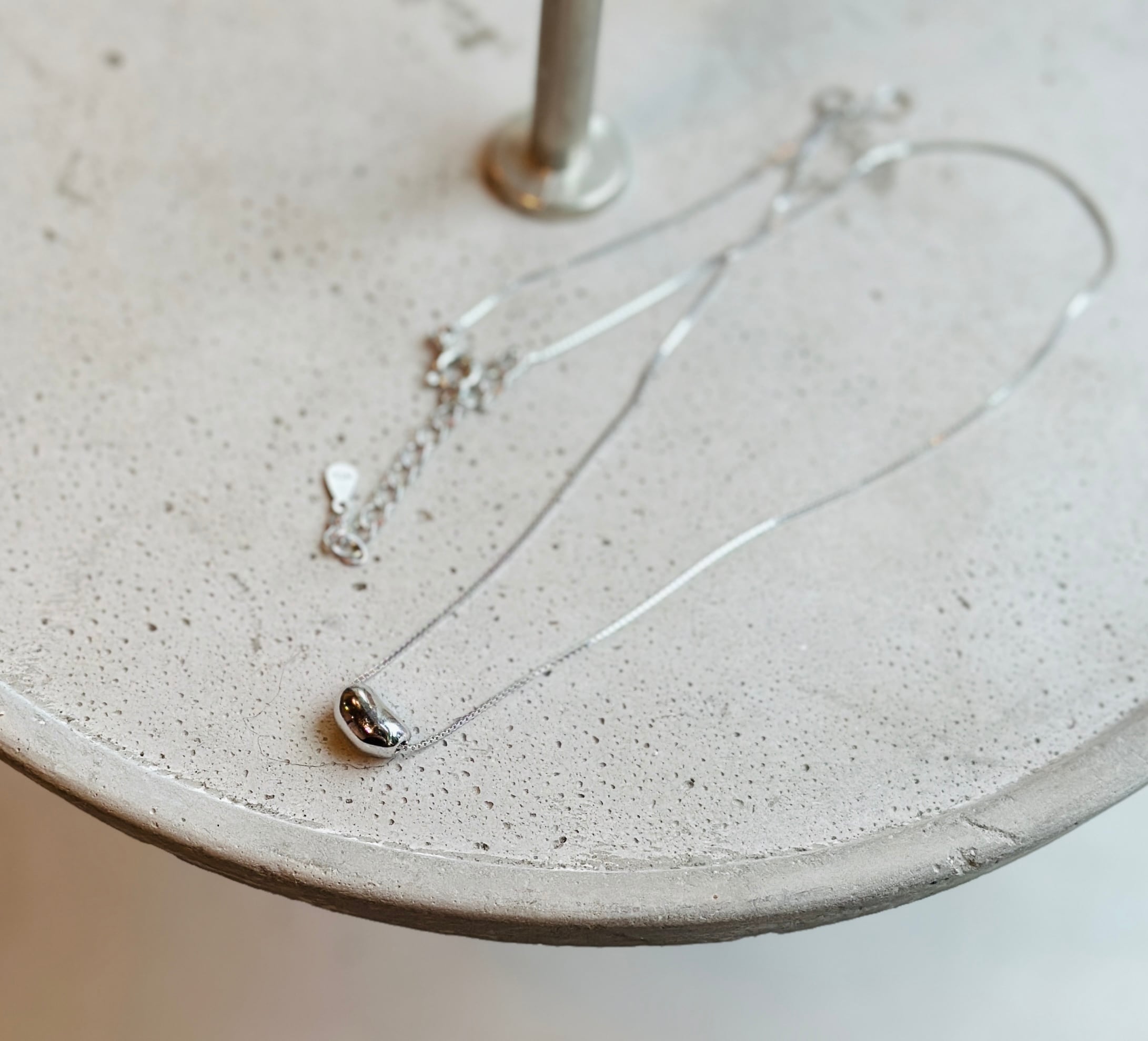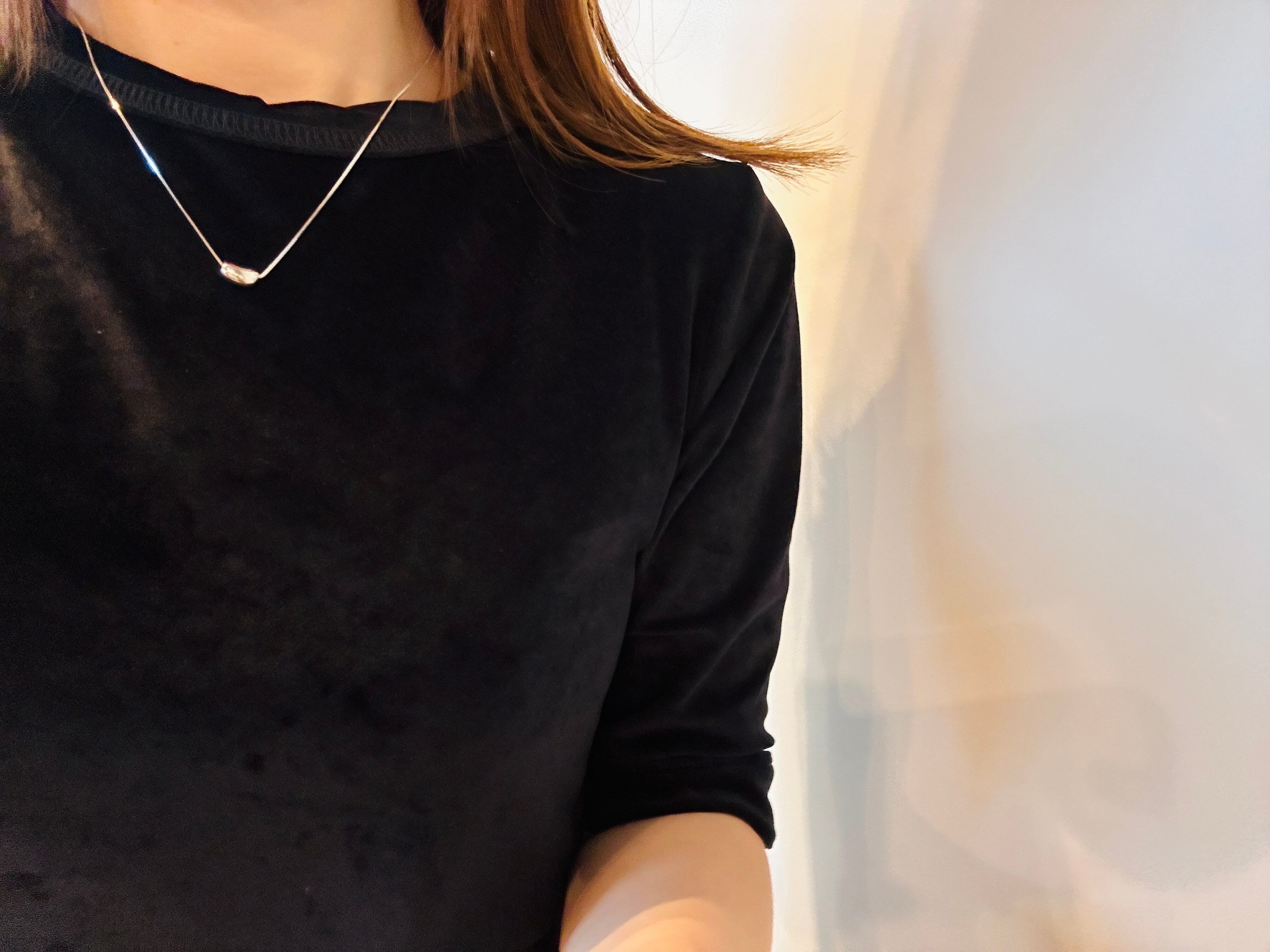 艶のあるチェーンと丸みのある柔らかいトップが女性らしいネックレス。